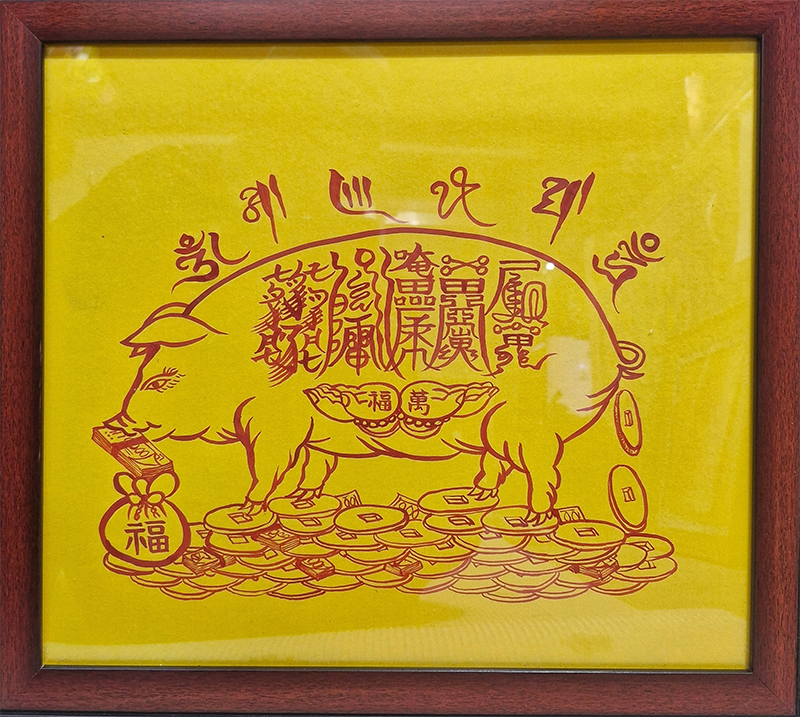영업이 부진하고 쇄퇴할때 선신의 공덕으로 재물이 늘고 영업이 왕성해지며 소원을 성취할 목적으로 영업장이나 사업장에 걸어두는 돼지재수부로 통영되기도 하는 부적입니다.